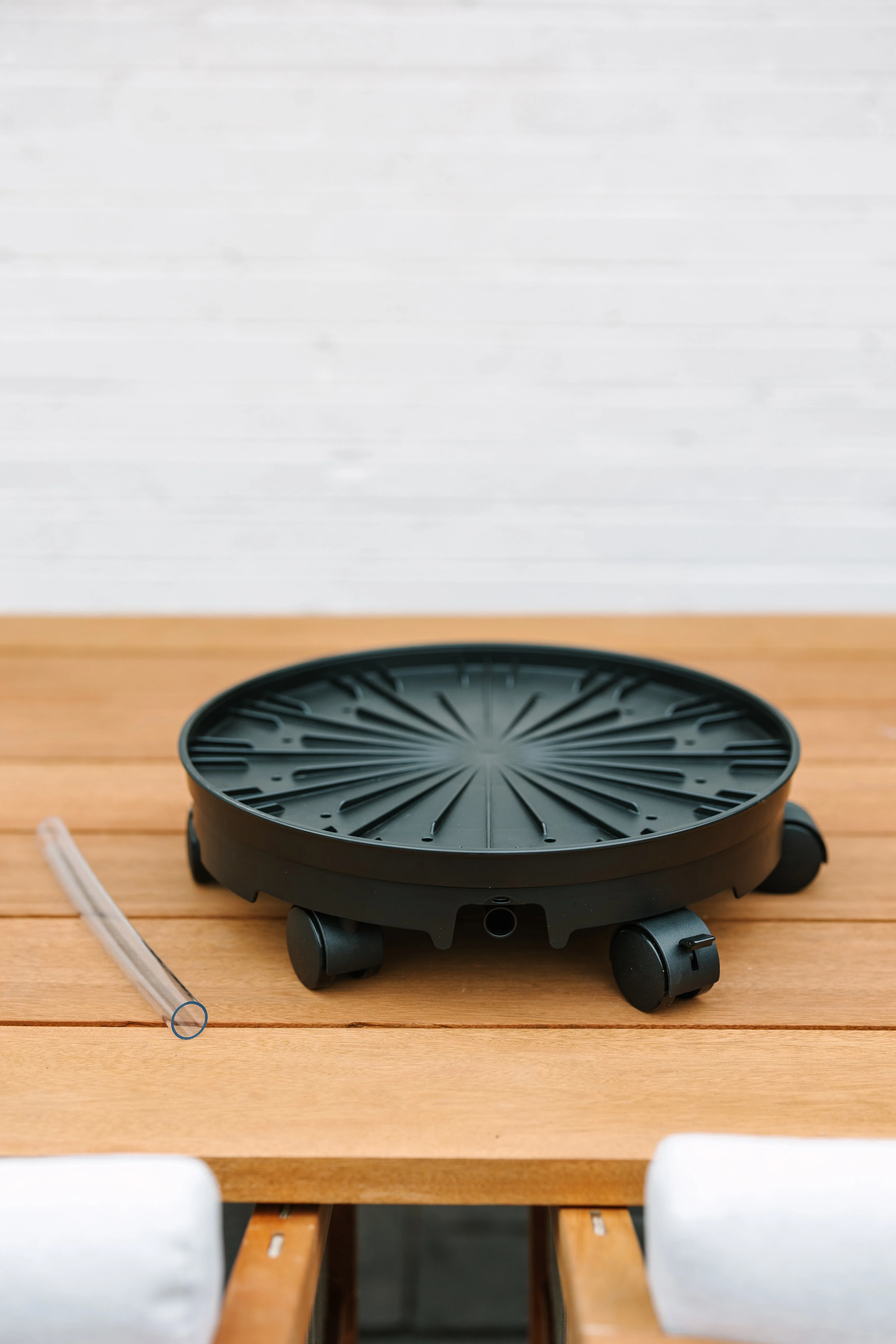 Ensure all of your plants get equal sunlight with GreenStalks patented rotating wheeled planter base proudly made in East Tennessee. Designed for any planter with a base diameter of up to 15 inches, this rotating planter caddy can be used indoors or outdoors on a level surface. It allows for excess water to easily drain through the spout so your plants receive the perfect amount of water every time. Experience the joy of containerized gardening for yourself with the GreenStalk Ultimate Spinner Base, complete with a wheel kit!